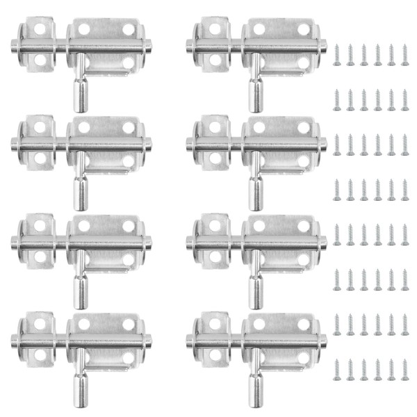 CHEUKYIU 8 Pieces Stainless Steel Door Bolt Security Door Bolt Sliding Lock Bolt Latch with 48 Screws Deadbolt Lock Bolt Latch Small for Bathrooms Bedroom Shed, Silver