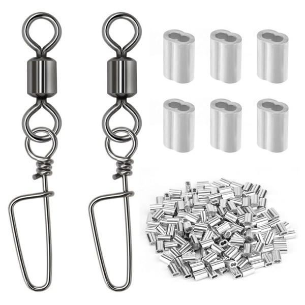 CHEUNGHAO Decoy Crimp Swivel Snap Set, 70PCS Decoy Crimp Set & 30 Snap Swivels for Duck and Goose Hunting, Durable Decoy Line Cord Crimps with Ball Bearing Fishing Swivels for Efficient Decoy