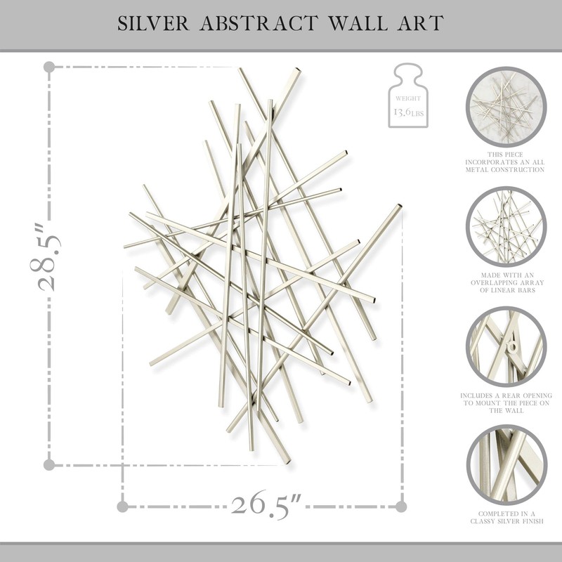 Cheungs Avalon Abstract, Silver Bar and Panel Wall Decor Piece