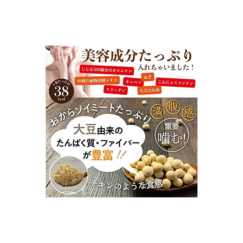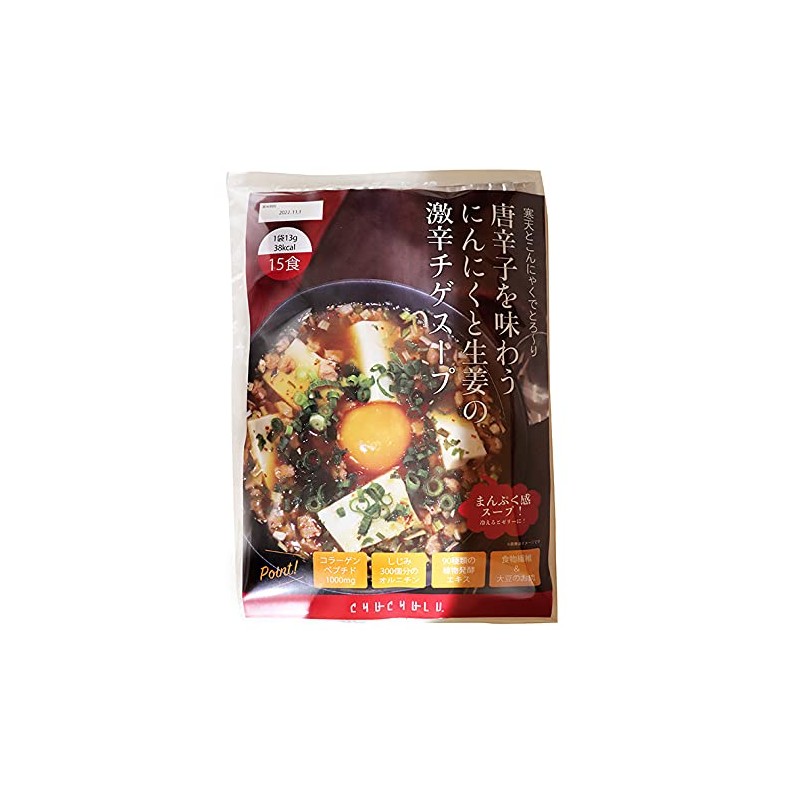 Ingredients: Sugar, collagen peptide, salt, ginger powder, chili pepper, powdered oil, pork powder, garlic powder, chicken powder, onion powder, konjac powder, agar powder, pepper, 90 types of plant fermentation extract, ornitine, vegetable oil, ingredients, skepper (granular soy processed goods, cabbage, onions) / seasoning (amin). noacids, etc.), coloring Ingredients (caramel pigment), L-carnitine, gelling agent (polysaccharide thickener), (some parts include wheat, soy, pork, chicken, gelatin, apples, and potamo).