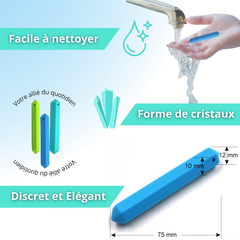 - Chew collar for babies, children, adults. Chew toys especially against stress and anxiety problems.