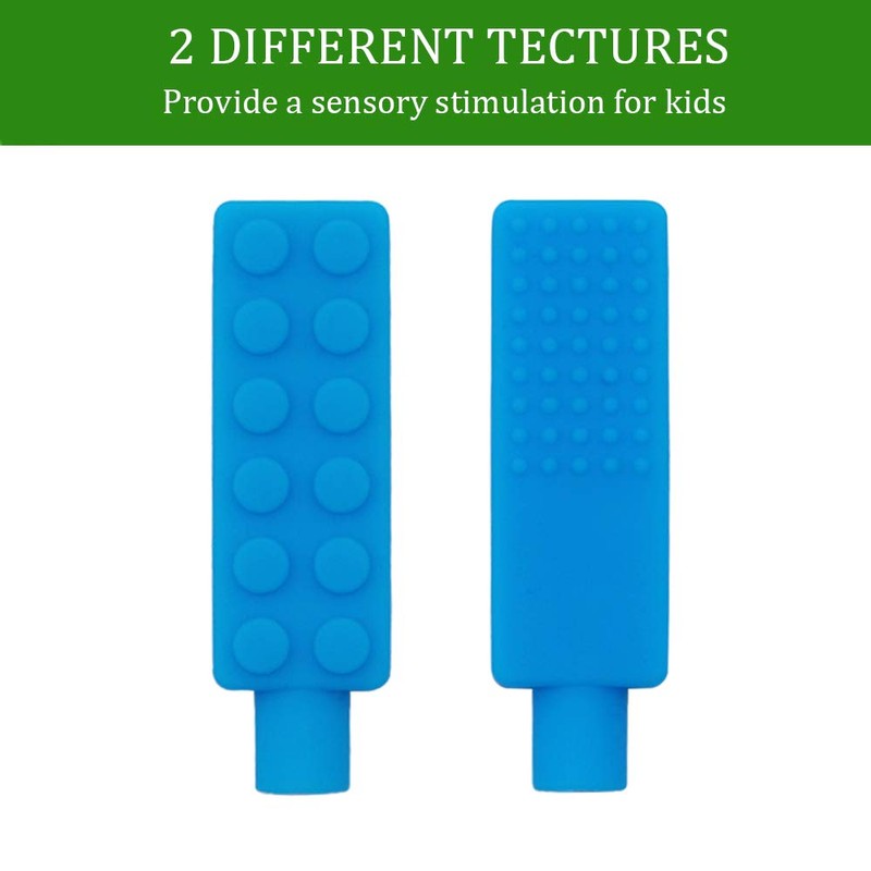 - 【SENSORY STIMULATION】Our chew toys for autistic children have two different textures for oral motor stimulation, one side features stylish brick bumps while the other side features small rounded bumps.