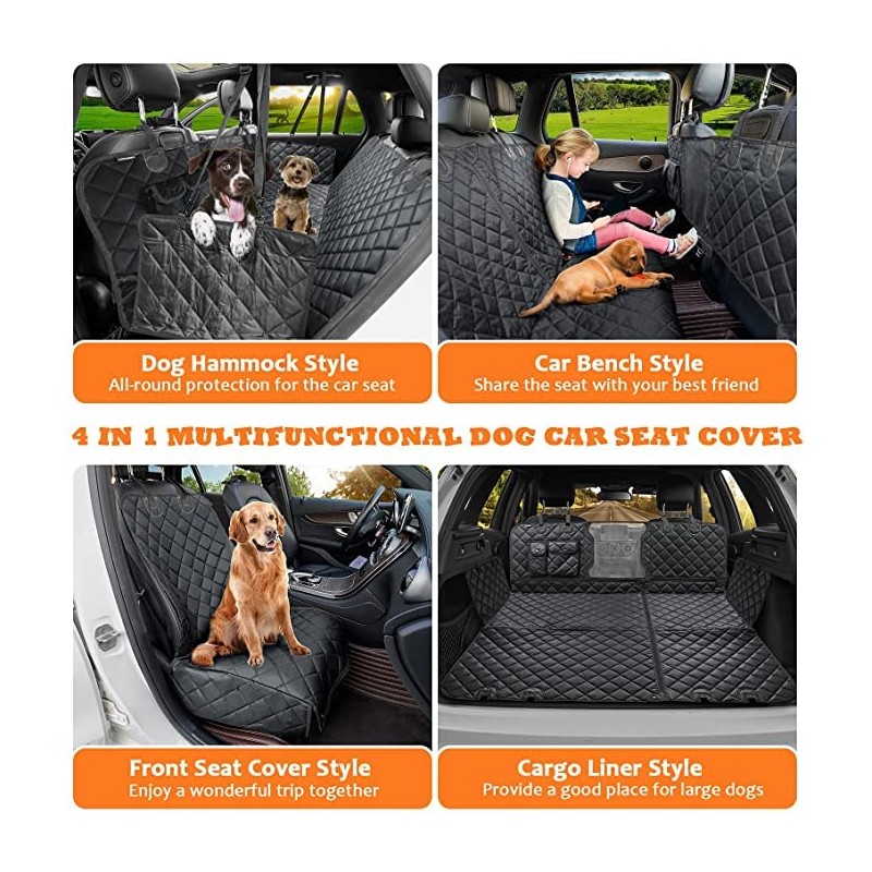 CHEWCREW 4-in-1 Dog Car Seat Cover Waterproof Pet Dog Travel Mat Mesh Dog Carrier Car Hammock Cushion Protector with Zippers and Pockets (Black)