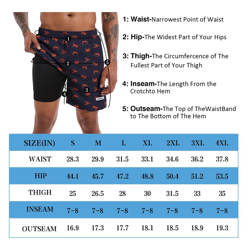 • 2 in1 COMPRESSION LINING Mens Swim Shorts Built-in compression lining provides extra support and breathability. Lining soft and comfortable. Elastic waistband with adjustable Invisible drawstring for a ultimate security ensures shorts don't sliding down when surfing or swimming.
