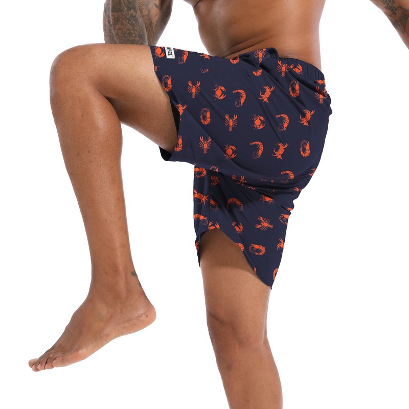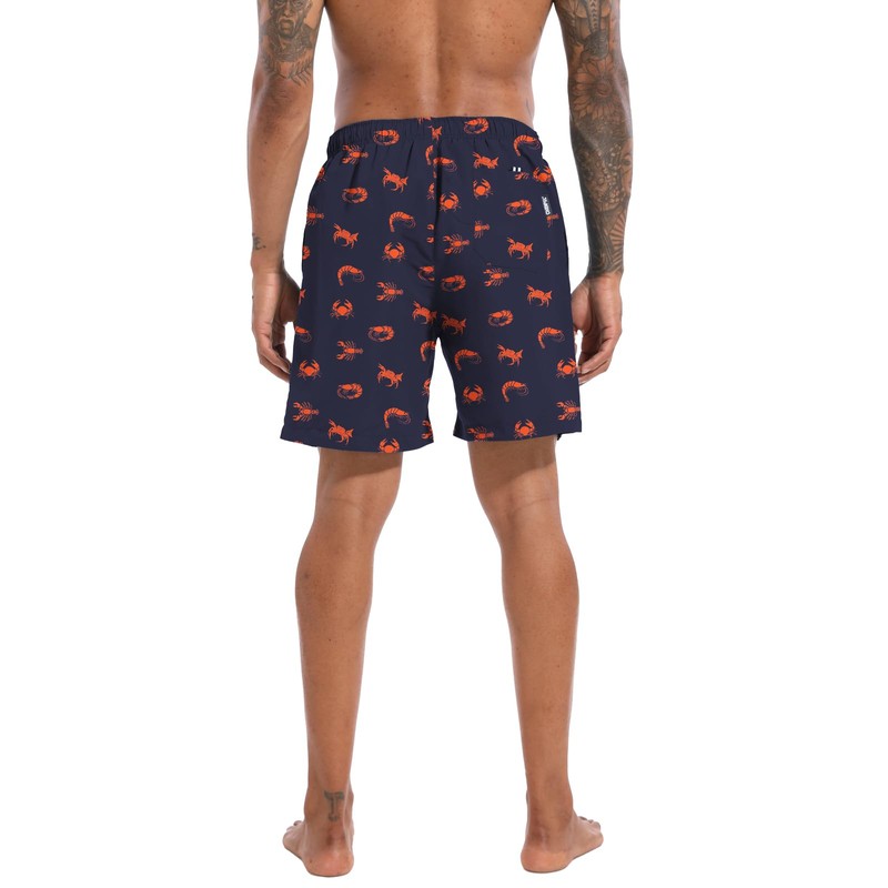 CHEXPEL Men's Swim Trunks Quick Dry Beach Shorts with Pockets and Compression Liner 7 Inch Inseam Bathing Suits Crab S