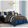 Chezmoi Collection Arden 7-Piece Modern Pleated Stripe Embroidered Zigzag Bedding Comforter Set (Queen, Coffee/Brown/Navy/White)