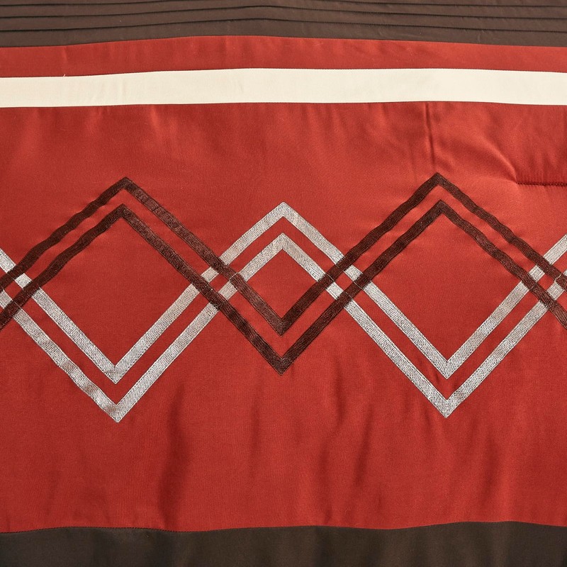 Chezmoi Collection Arden 7-Piece Modern Pleated Stripe Embroidered Zigzag Bedding Comforter Set (Queen, Spice/Brown/Coffee Cream)