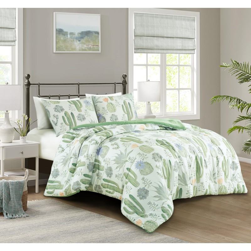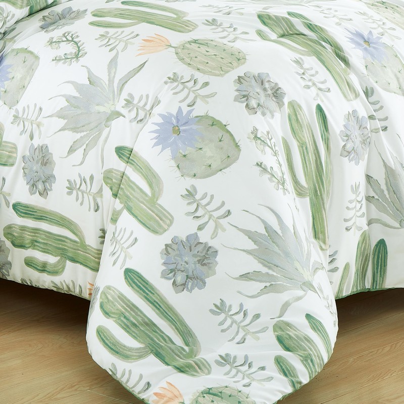 - Delicate cactus and succulent prints in soothing gentle green and pastel color tones to provide the perfect pop of color which managing to be chic and subdued for a peaceful and serene ambiance. Made of microfiber polyester, the comforter is super soft, versatile, and lightweight suitable for year-round use.