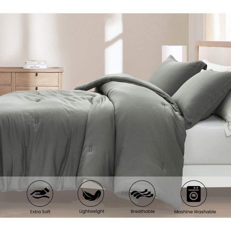 - Cliff 3-Piece Blend of Rayon Derived from Bamboo Cooling Comforter Set Includes: 1 Comforter, 2 Shams. Classic solid color design to complement any bedroom decor, adding a touch of sophistication.