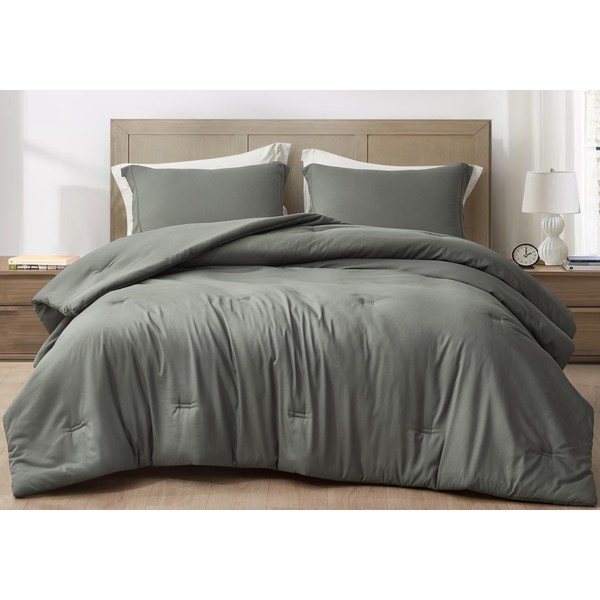 Chezmoi Collection Cliff 3-Piece Lightweight Cooling Comforter Set, Oversized King - Rayon Derived from Bamboo & Polyester Blended, Soft Breathable Bedding for Hot Sleepers, Dark Gray