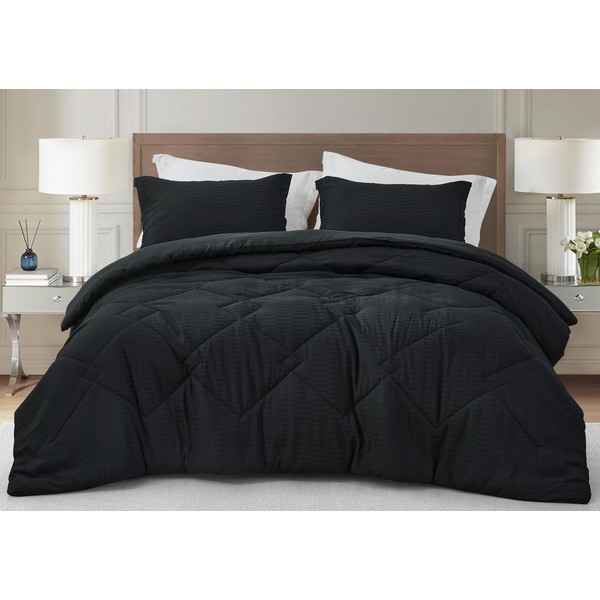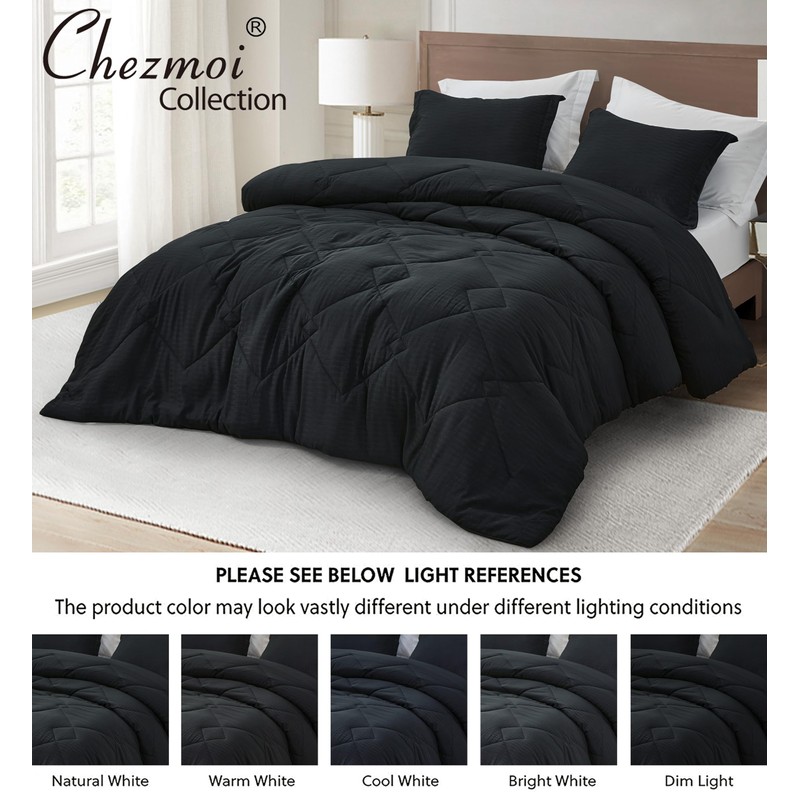 Chezmoi Collection Hugo 3-Piece Textured Thin Comforter Set - Lightweight Woven Design - Soft Microfiber Bedding for All Season, Full, Black