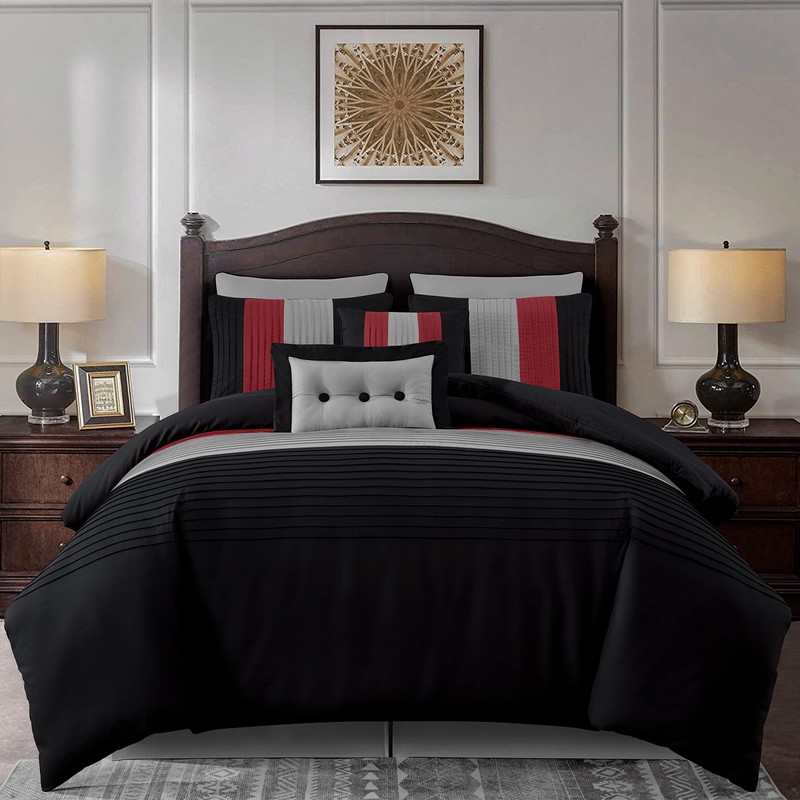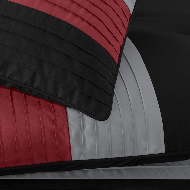 Chezmoi Collection Loft 8-Piece Luxury Striped Comforter Set (King, Red/Black/Gray)