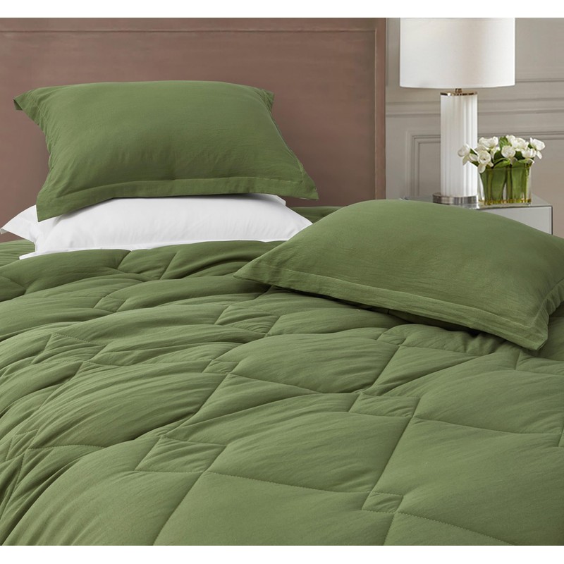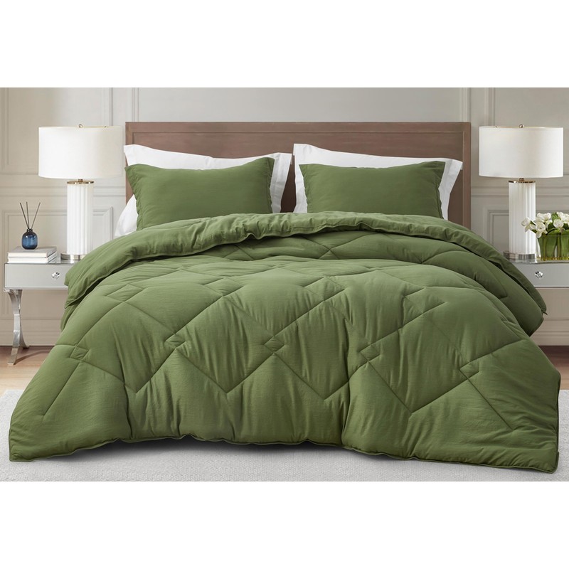 Chezmoi Collection Logan Olive Green Comforter Set King Size 3-Piece Soft Lightweight Stone-Washed Microfiber Comforter Set for All Season (1 Comforter 104x92, 2 Shams)