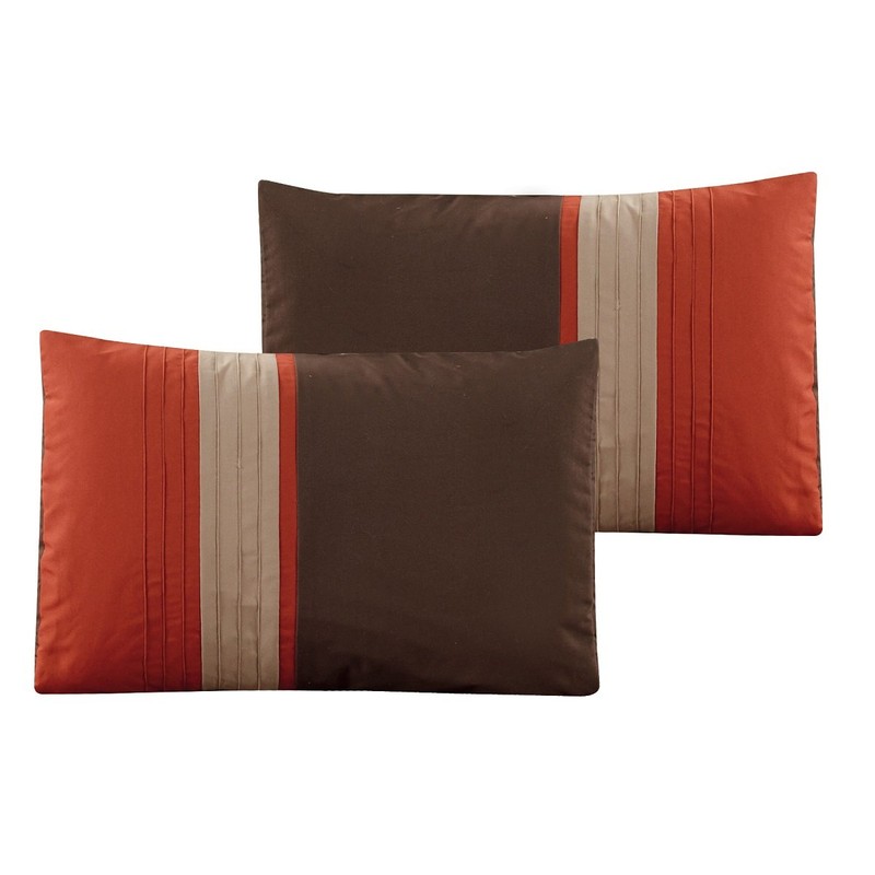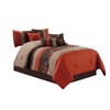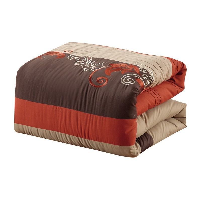 - Beautiful eye-catching striped design with an elegant scroll floral luxury leaves embroidery pattern across. Intricate two-tone embroidery stitching pattern beautifully displayed with a soothing rust orange and taupe tone as the centerpeice across the comforter