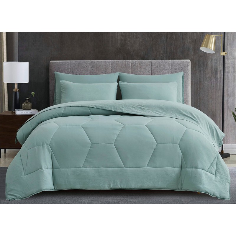 - Features a honeycomb geometric hexagon stitch pattern that exhibits an modern casual look and feel. An attractive crinkled effect fabric formed by stone-wash which enhances the aesthetics of the. Included are matching solid color sheet set pieces to easily pair with your décor. The fitted sheets are made with 360 degrees elastic cord with deep pockets to fit mattresses up to 14".