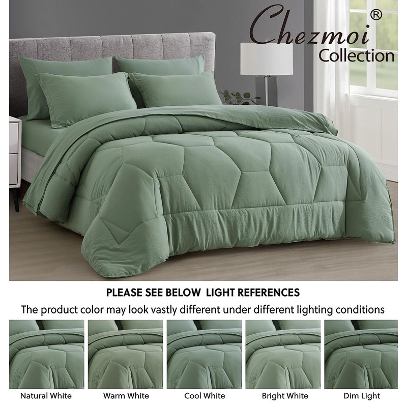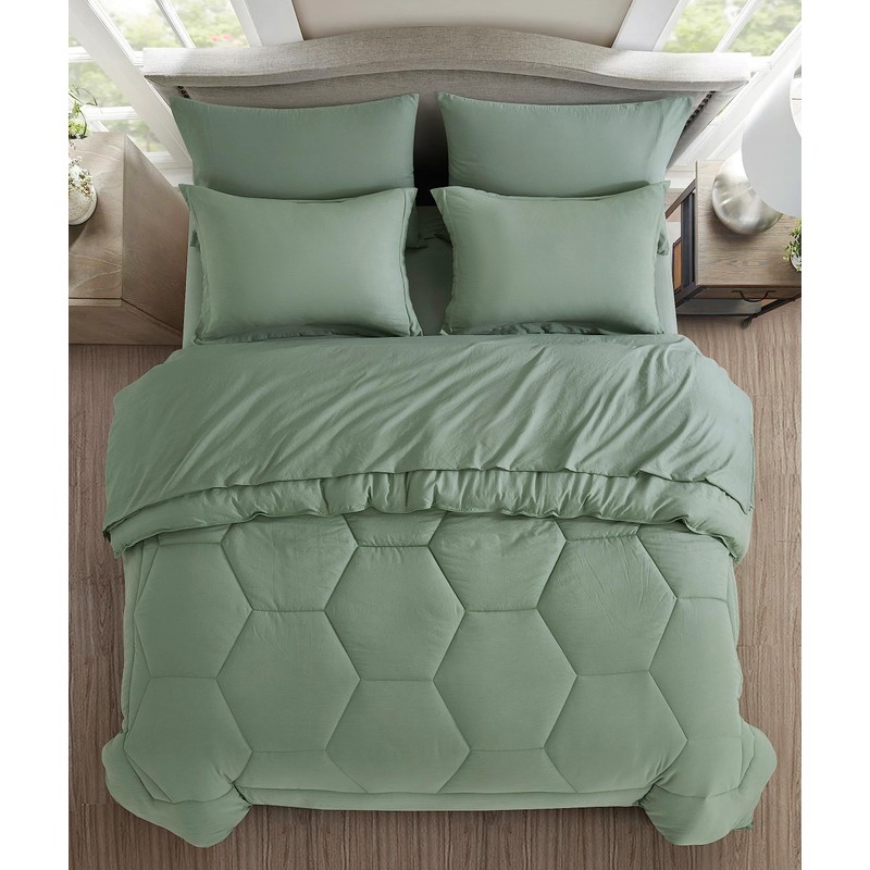 Chezmoi Collection Piper Queen Bed in a Bag 7-Pieces Honeycomb Geometric Hexagon Quilted Stone Washed Microfiber Comforter with Sheets Lightweight All Season Bedding Set (Queen, Sage Green)