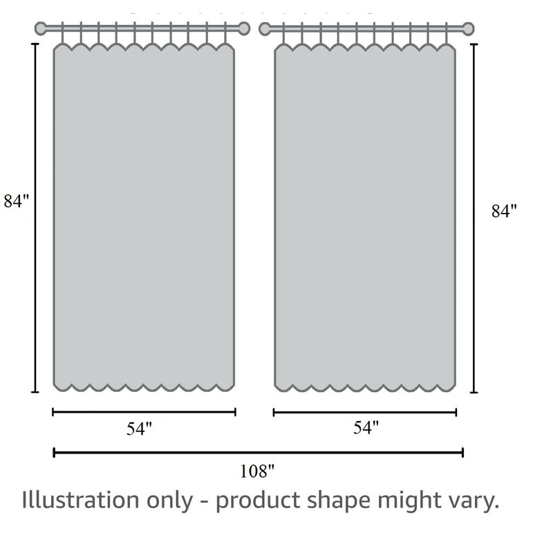 • Each panel size: 54" x 84" inches (108" x 84" for both panels); 18" Valance Drop; Rod pocket insertion with up to 2" rods