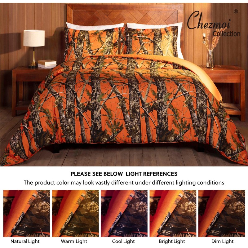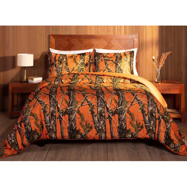 Chezmoi Collection Salem 3-Piece Cabin Lodge Forest Woods Comforter Set - Nature Camo Tree Leaves Printed Soft Microfiber Bedding - Orange, King