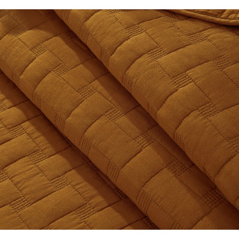Chezmoi Collection Vert 3-Piece 100% Cotton Quilt Set Queen Size, Spice - Basketweave Quilted Lightweight Pre-Washed Soft-Finished Cotton Bedspread for All Season