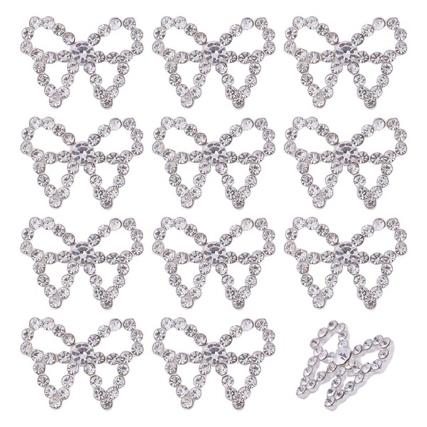 - What You Will Get: You will get 12 pcs of platinum rhinestone bow totally, that size about 1.75x2.35cm/0.69x0.92''. The sufficient quantity are enough to meet your more usage needs. Note: this bow decoration needs to be used with glue or needle and thread suture