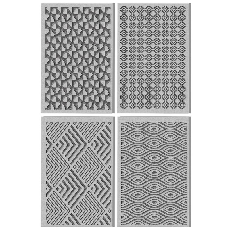 CHGCRAFT 4 Sheets Geometric Clay Texture Mat Artistic Seamless Pattern Polymer Clay Texture Sheets DIY Tools for Pottery Earring Jewelry Making Stamp Engraving Machines, 4x2.6inch