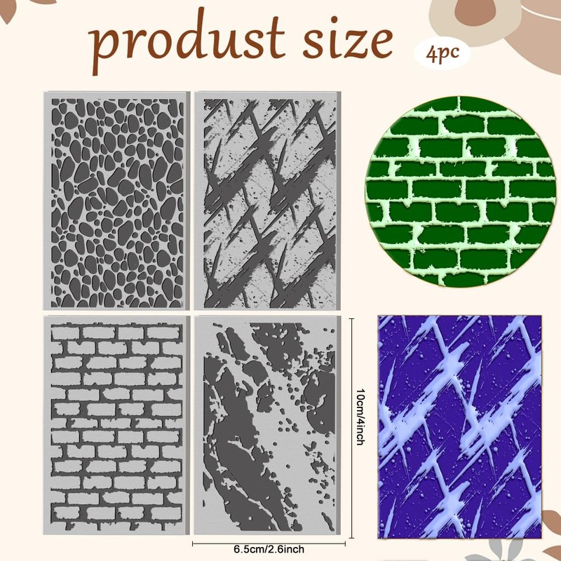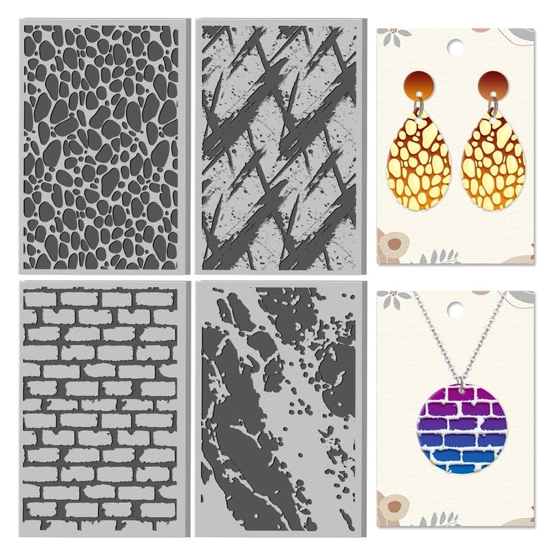 • What's Included: You’ll get 4 wall texture pattern rubber texture stamp (approx. 4x2.6 inches / 10x6.5 cm), ideal for crafting polymer clay earrings, jewelry, and more