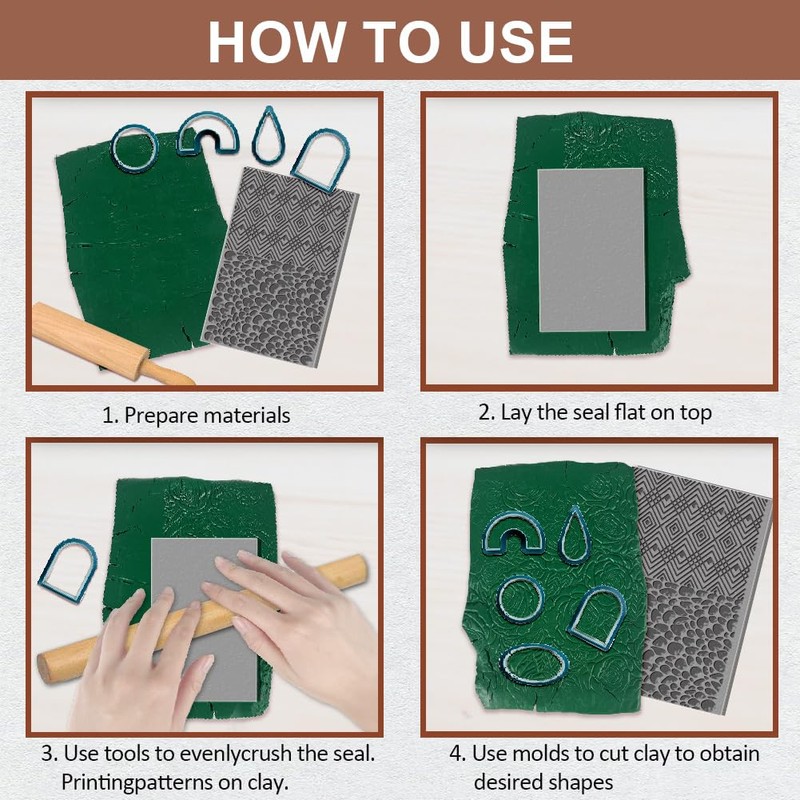 - Easy to Clean: These texture stamp sheets are made from high quality rubber material, ensuring durability. After use, they can be easily cleaned with water, and any residual clay can be brushed away with a brush.