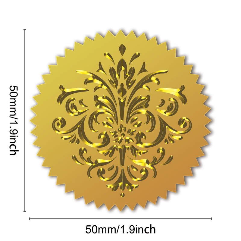 CHGCRAFT Pack of 100 Gold Foil Certificate Seal Baroque Gold Foil Embossed Stickers Gold Foil Embossed Certificate Seal Embossed Sticker for Envelope Invitation Letter Graduation Party