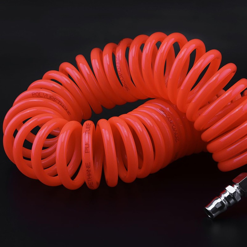 ChgImposs Polyurethane Recoil Air Hose, 30 Ft Long Air Compressor Hose with Bend Restrictor, 1/4" Industrial Universal Quick Coupler and Plug Orange