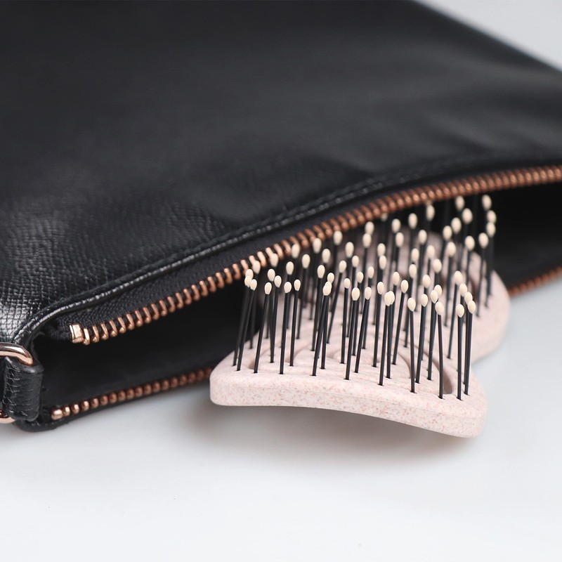CHIARA AMBRA® Mini Eco Friendly Straw Hair Brush, Natural, No Pulling, Unique Detangling Brush with Coil Spring, Pocket Size, Ideal for On the Go