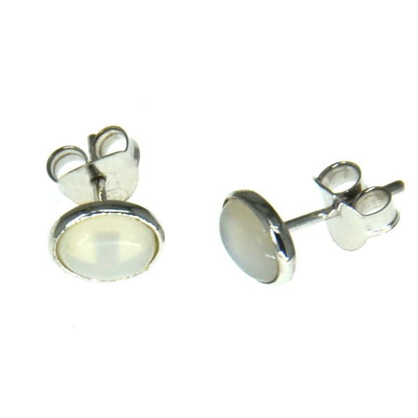 - DESIGN: Ohrschmuck Spezifikation: Ohrstecker Damen 925 Sterling Silber Mondstein Damen-Ohrringe in weiß, ovale gewölbte Steine 7x5mm, 1mm Silberrand als Fassung