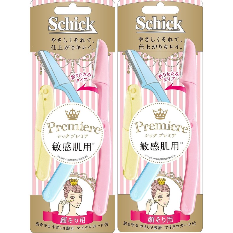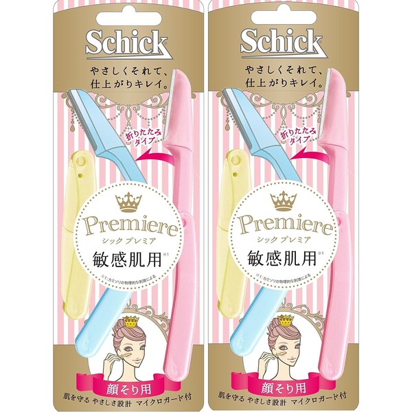 Chic Schick Folding Premier Sensitive Skin Large Dispo with Microguard Disposable Female Razor Face Makeup Mixed Color 3 Pack