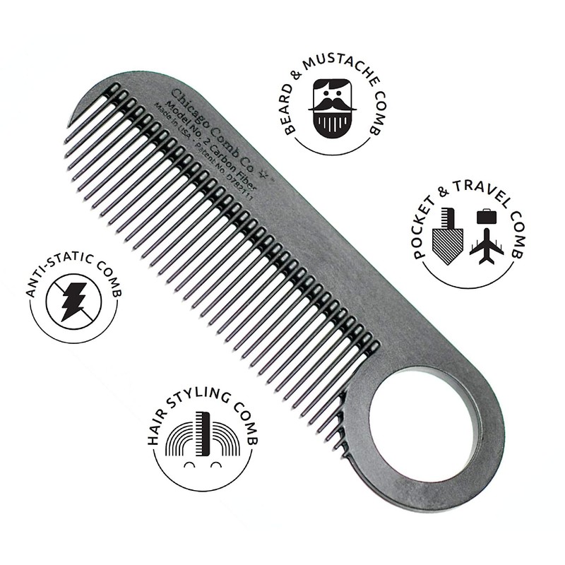 Chicago Comb Model 2 Carbon Fiber, Made in USA, Anti-static, 4 inches (10 cm) long, Fine-tooth, Pocket & Travel comb, for Thinner Hair, Beard & Mustache comb