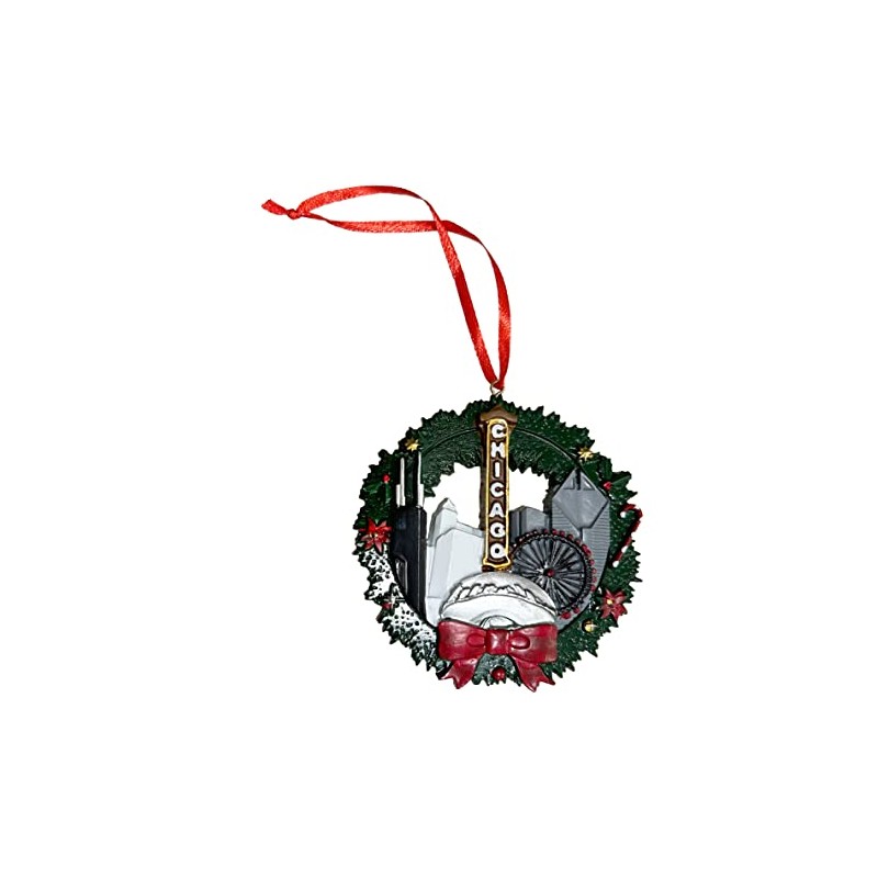 Chicago Wreath with Bean Christmas Ornament