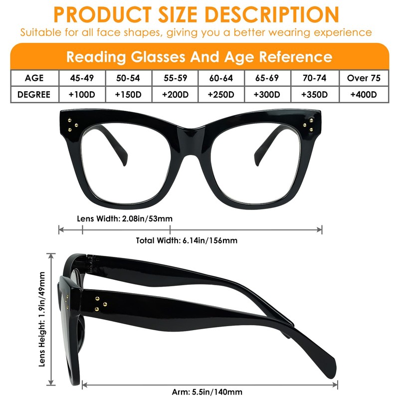 - 【COMFORTABLE TO WEAR】Designed with spring hinges to fit all face shapes, the temples can be easily opened and closed without pinching your face. Comfortable nose rest is made of environmentally friendly and skin-friendly material, even if you wear it for a long time, your nose bridge will not feel the pressure.