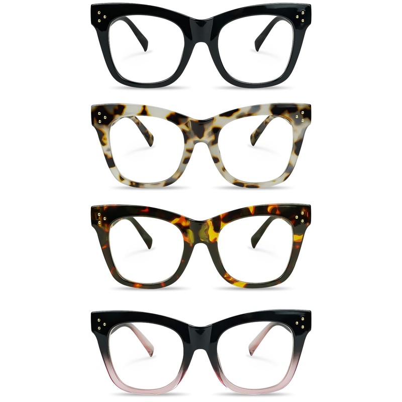 Chiccool Cat Eye Reading Glasses for Women 4 Pack Oversized Stlyish Blue Light Blocking Computer Readers with Comfortable Hinge +2.75