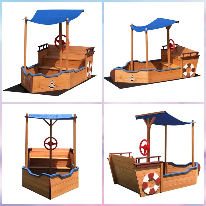 - Sturdy Fir Wood Construction:Crafted from durable fir wood, this sandbox is built to withstand outdoor conditions and provide long-lasting fun.The sturdy construction ensures safety and stability during play, giving parents peace of mind while their children enjoy their pirate ship sandbox