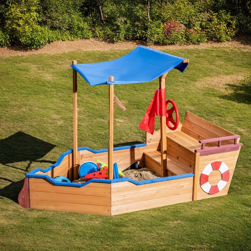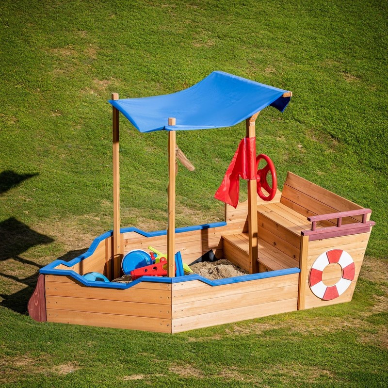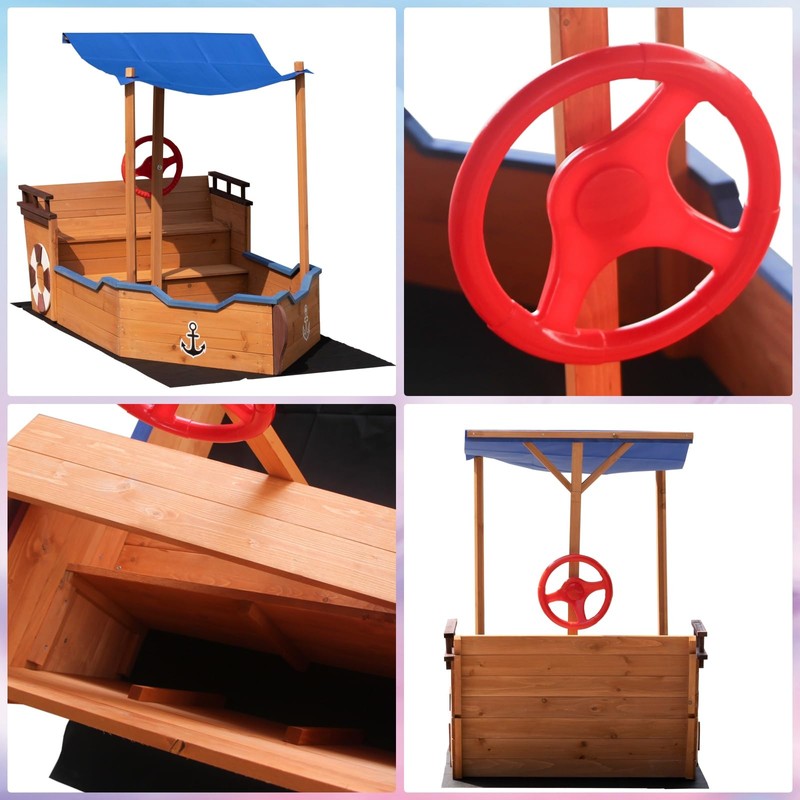 - Fun Pirate Ship Design:The Pirate Ship Sandbox features an eye-catching and realistic design, complete with a rudder, lifebuoy decoration, and two steps.This imaginative play structure encourages creative outdoor adventures for children aged 3 to 8, making playtime exciting and engaging