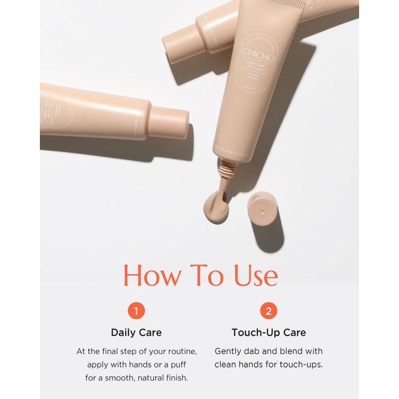 CHICHO Sheer Glow BB Cream 93% Herbal Base Chamomile Flower - Korean Makeup Redness Coverage for Acne Prone Sensitive Skin, Vegan, Non-Comedogenic, Pore Concealer, 1.01 fl.oz.