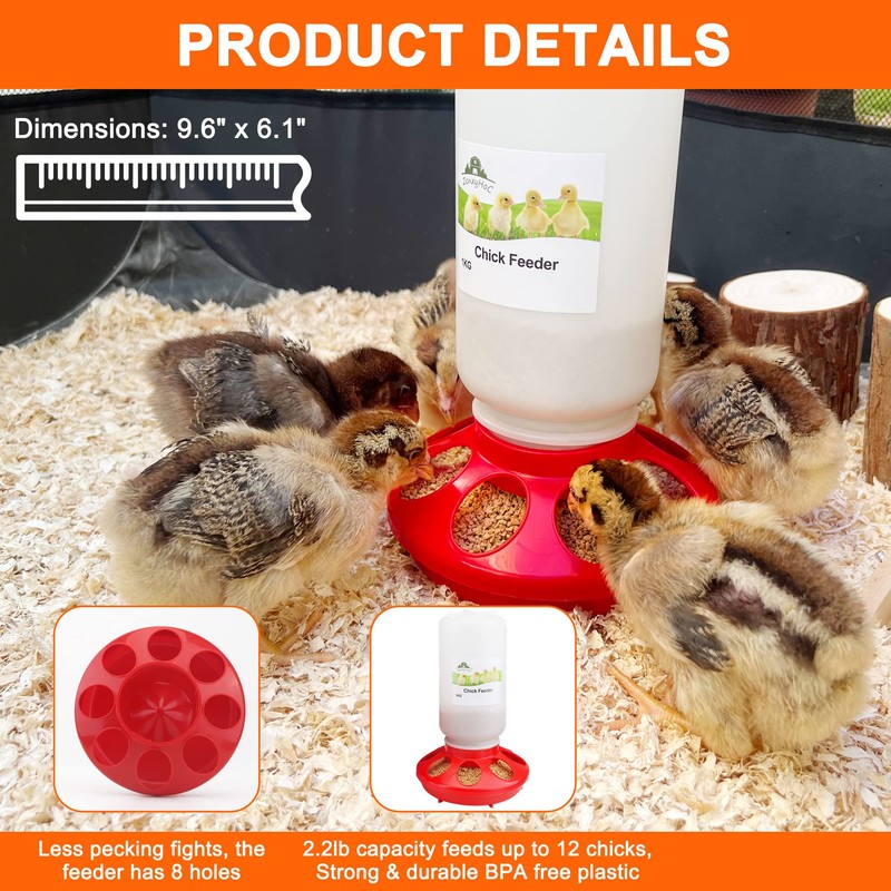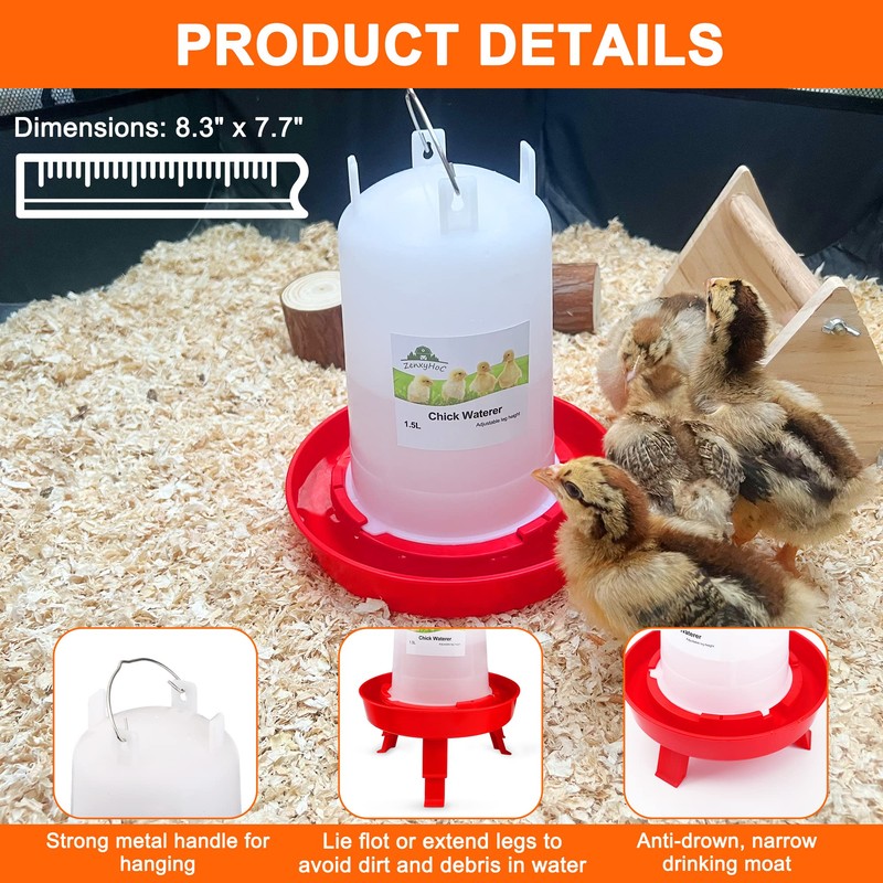 ZenxyHoC Chick Feeder and Waterer Set, 0.3 Gal Feeder and 0.4 Gal Waterer with 3 Adjustable Heights