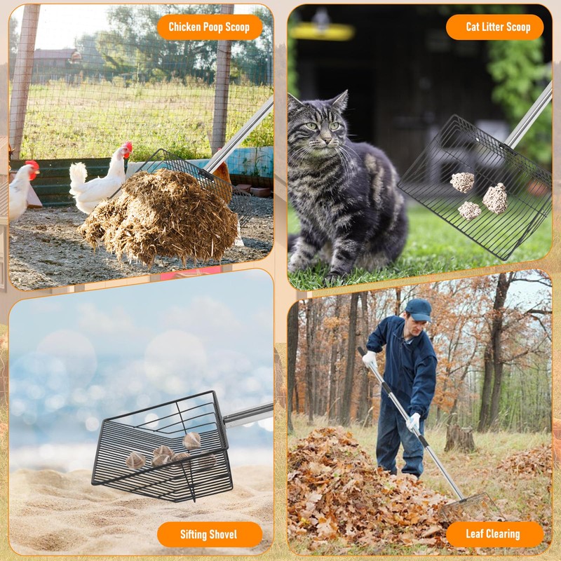 - Multiple Scenarios: Pet pooper scooper is perfect for chicken coops, rabbit cages, and cat litter boxes. It’s also great for beach sand, garden debris, or cow pens, whether working in a small chicken coop or a larger pet area, long handled cat litter scooper makes cleaning tasks easier and less tiring.