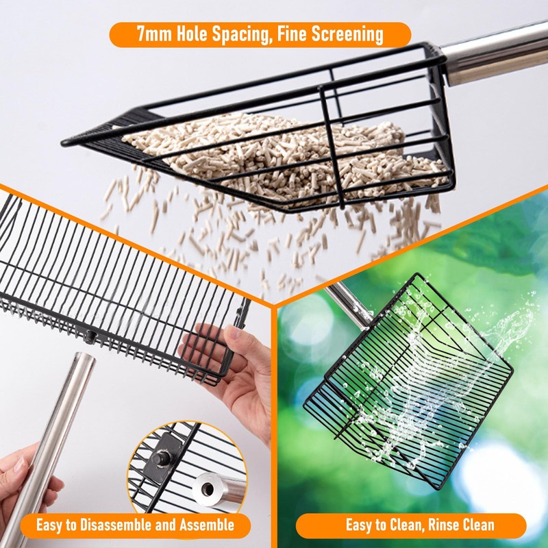 2. Comfortable Grip: Long handled litter scoop features a comfortable pp, rubber handle that provides an easy grip, making the cleaning process effortless. The lightweight build and adjustable handle with a soft rubber grip are designed for long-term use.