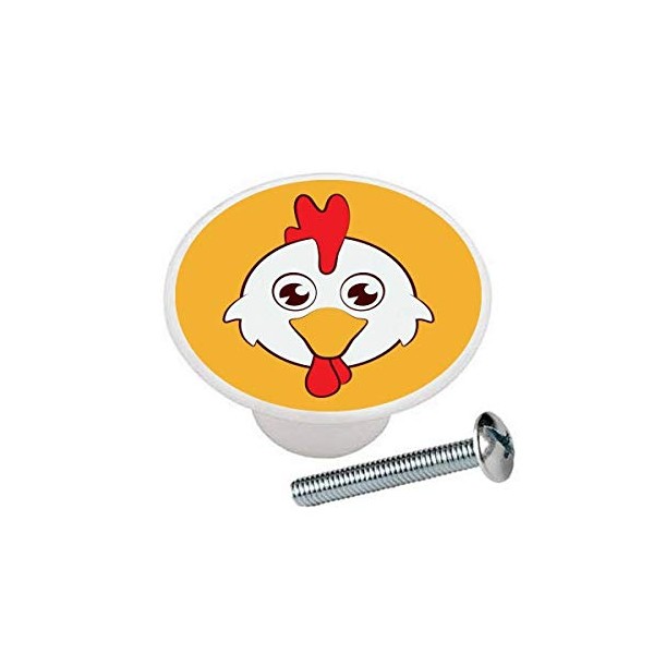 Chicken Face - Chickens Roosters Chicks Farm Coop Round Designs - DECORATIVE Glossy CERAMIC Cupboard Cabinet PULLS Dresser Drawer KNOBS