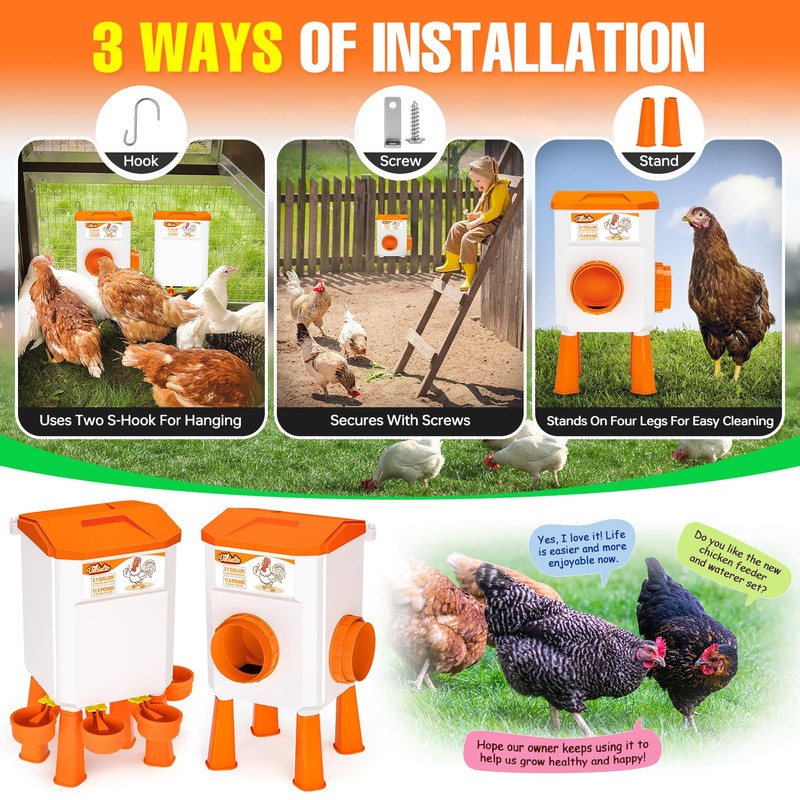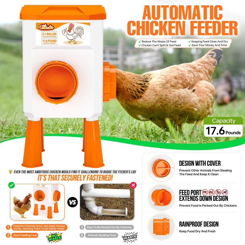 VEDALIO Chicken Feeder and Waterer Set, 2.1 Gallon/17.6 Pounds, Automatic Chick Feeder and Waterer Set No Waste, Chicken Lover Gifts for Women Men