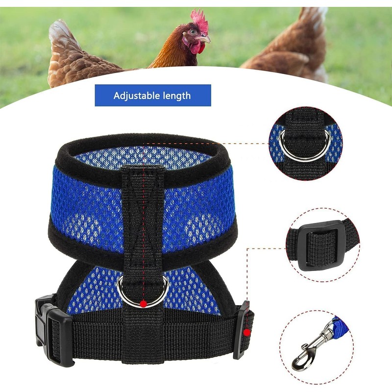 - 【Adjustable and Breathable Design】: The harness features an adjustable and breathable design, allowing for a snug fit that doesn't restrict your chicken's movement. The breathable material ensures your pet stays cool and comfortable during walks.