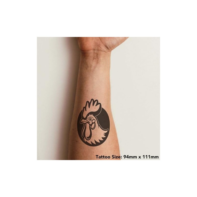 'Chicken Head in Circle Frame ' Temporary Tattoo - Water Resistant, Skin-Safe, Non-Toxic Transfer (TO00073379)