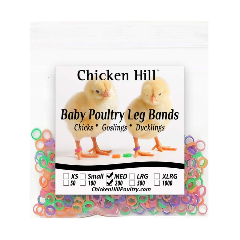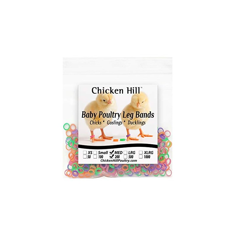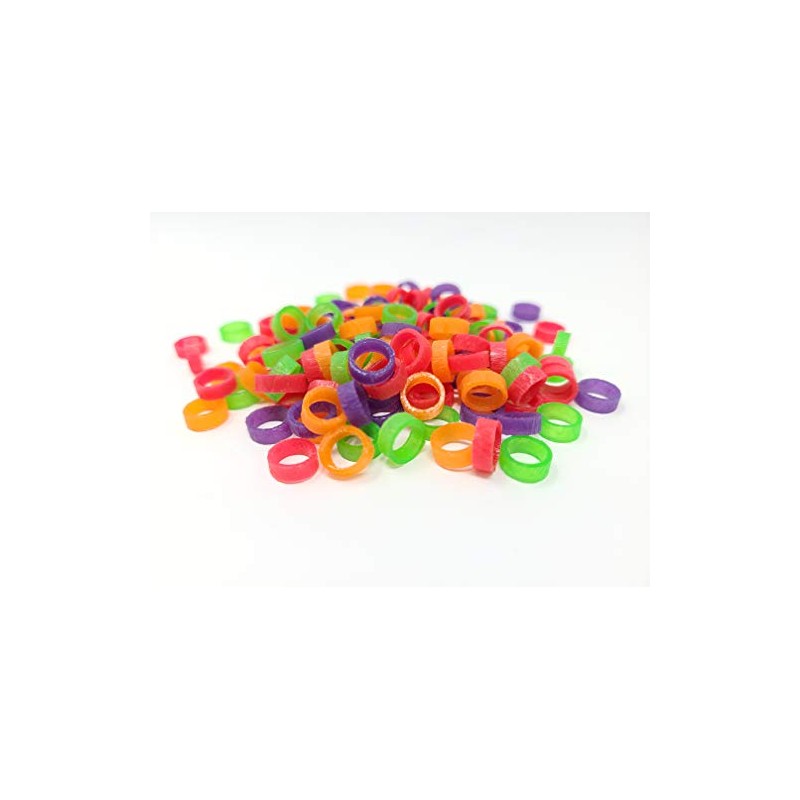 Many chicks may look alike at hatch until feathers are grown in. Baby Poultry Leg Bands applied at hatch make it easy to identify between breeds and varieties of chicks. Use one band or multiple bands per leg as identifiers. The leg bands are a quality heavy grade band that hold up well under repeated stress. The handler can easily stretch the band to go over the feet to put on or take off without pulling or twisting the chicks legs, reducing injury. Once they start to get tight from the chicks growing, about every 2 to 4 weeks, remove the old band and put on the next size up. After they have graduated through all sizes they, are ready for a permanent band. Available in packs of 100, 200, and 500 ( extras are included) Mix of Pink, Green, Orange, and Purple. Available sizes; Small 3/16" * Medium 1/4" * Large 5/16" Recommendations on sizing. 3/16" is equal to a size 3. Example; day old Quail, Serama, small bantams. 1/4" is equal to a size 4. Example; day old standard size poultry 5/16" is equal to a size 5. Example; day old ducks and geese