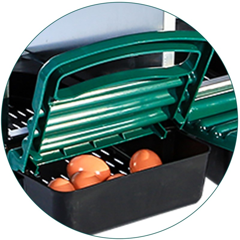 - Roll egg collection system: The nesting box adopts a tilted design, gently rolling eggs into a detachable tray without manual collection and without disturbing the hens.