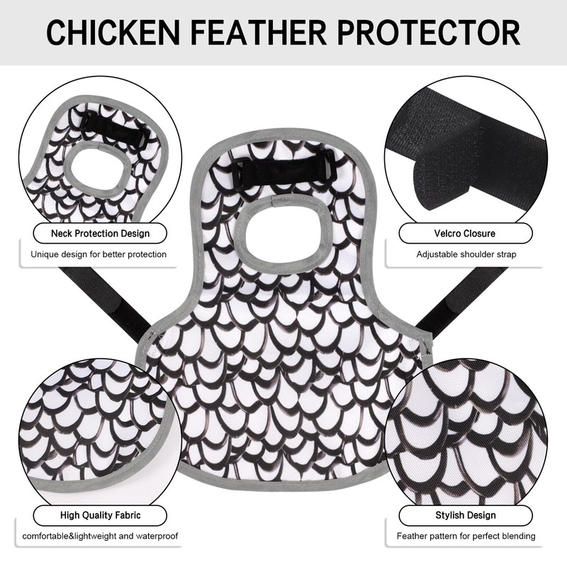 By protecting your chickens from feather loss, pecking, and injuries, these hen back protectors help keep your pets safe, maintain their beautiful plumage, and support their overall health and happiness. The adorable simulated feather patterns make injured chickens less noticeable, reducing the likelihood of being targeted by other chickens.