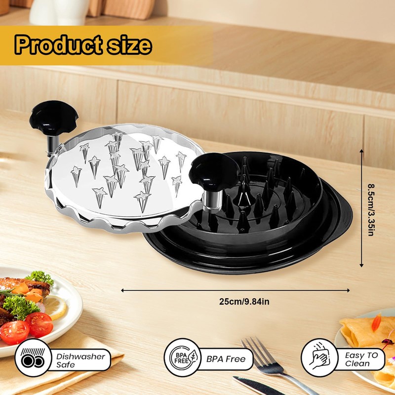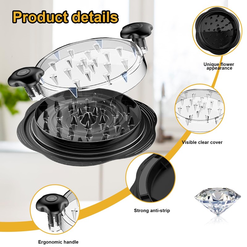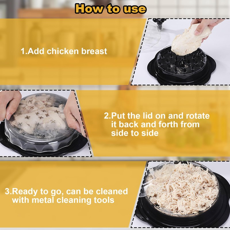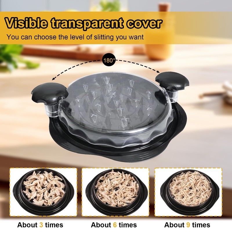 Chicken Shredder, Chicken Chopper 25.5 x 25.5 cm with Brush and Forks, Chicken Shredder with Brush and Forks with Transparent Lid - Black